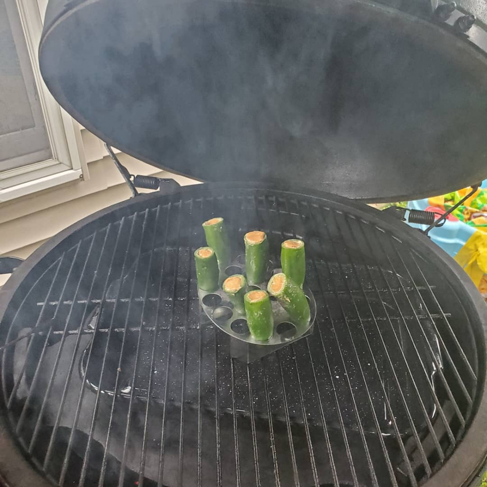 I put the mixed Peanutbutter in while smoking the jalapenos. Roughly half hour for smoking.It's the cow that drives the meat!!