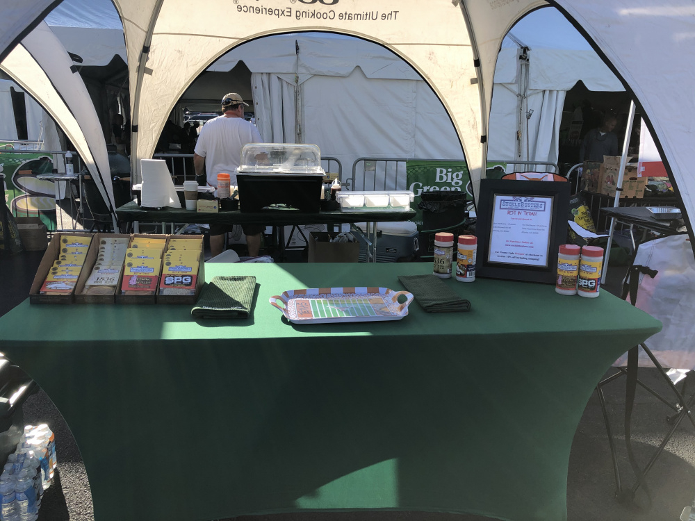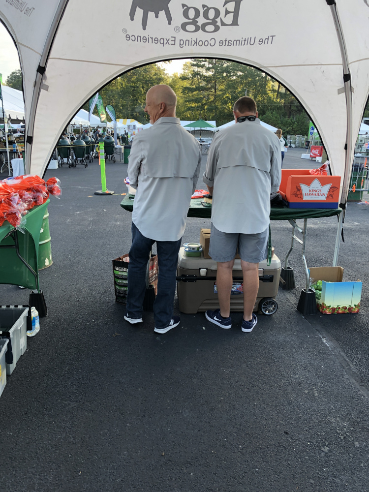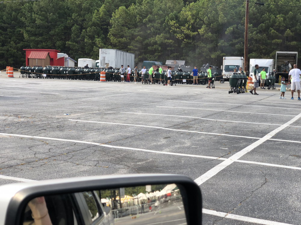 As we were leaving after loading it all back in my pickup Shelly took this pic of all the Big Green Eggs waiting for their new owners to take them home.