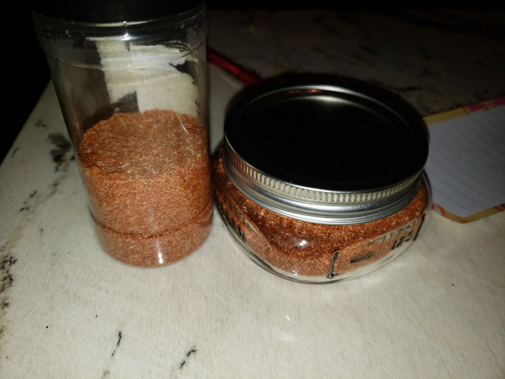 My little one turned 2yrs old and we are having a birthday party today to celebrate. We are having about 30 people over and I wanted to show off the egg so I committed to making pulled pork for the crowd. I picked up 3 pork shoulders but made a little error in size haha. One is 4.95lbs, one is 5.5 and the other is 7.8lbs. Worried that the big one would take too long before kick off I cut a huge piece off so now I have 3 pieces of pork in that 5lb range and one that's 3. I'm hoping that'll make it more likely to have the whole batch finish about the same time. Everything starts at 1pm and I'm looking to finish the cook at 12 so I can FTC for an hr before chow time. I'm cooking at 350 with cherry and pecan smoke and using my own rub pictured below. Fingers crossed I haven't made any errors in timing! I'm at my target temperature and I'm waiting on the smoke to blue (or rather smell right since it's dark out).