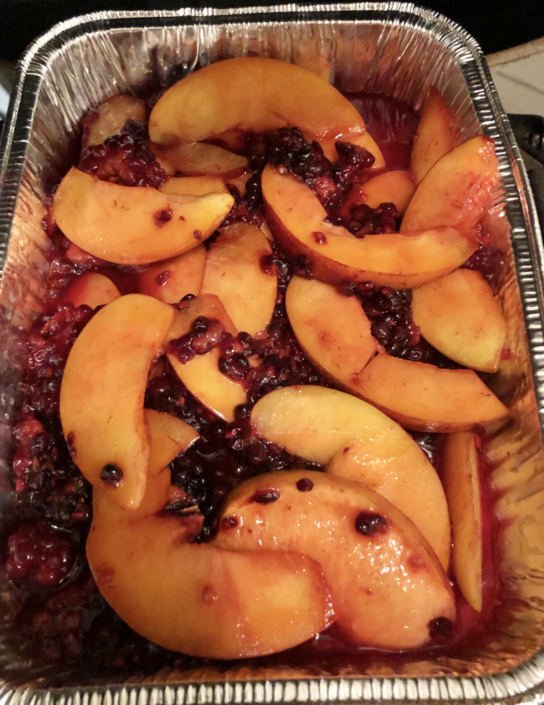 Let this get happy for about an hour then mixed in some some sliced peaces and put the tray on the Mini to cook up and caramelize a little.