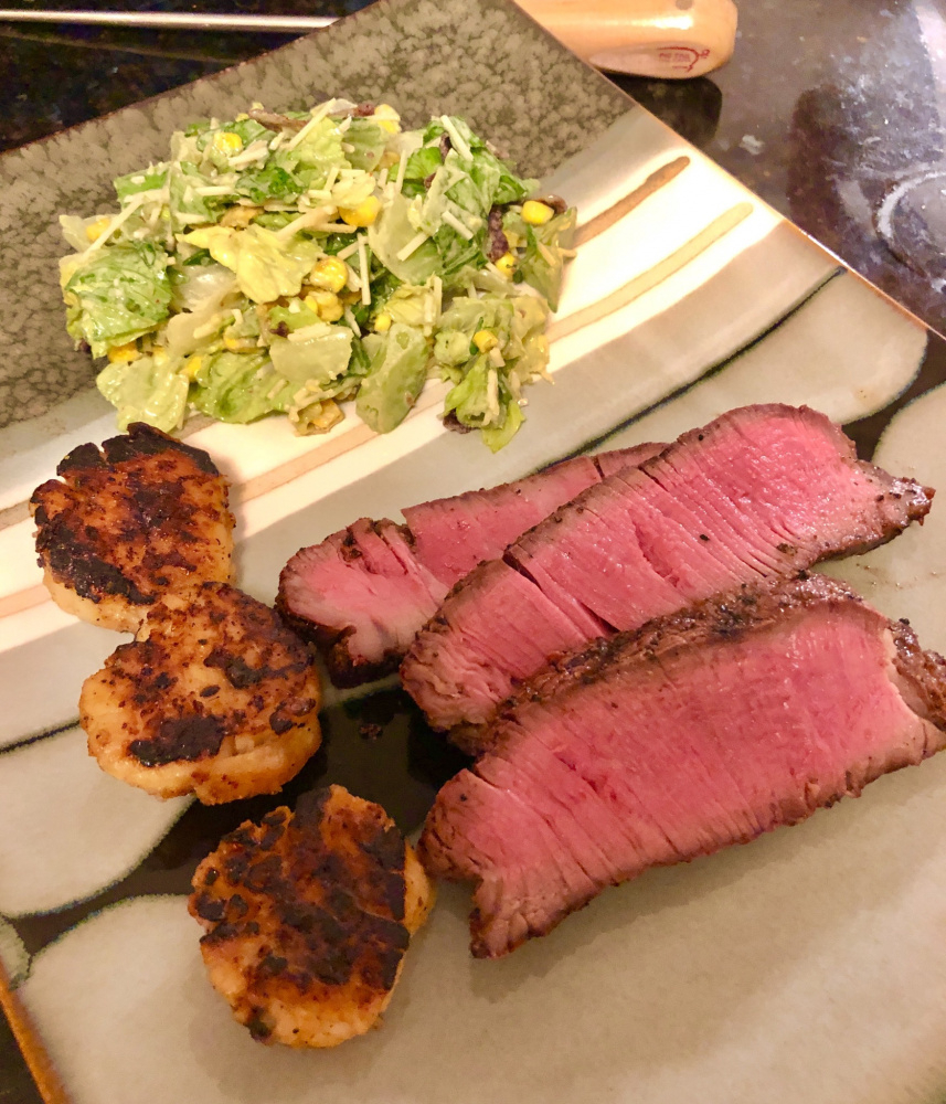 Went in to mix another drink and the scallops got away from me a little but everything else was excellent.