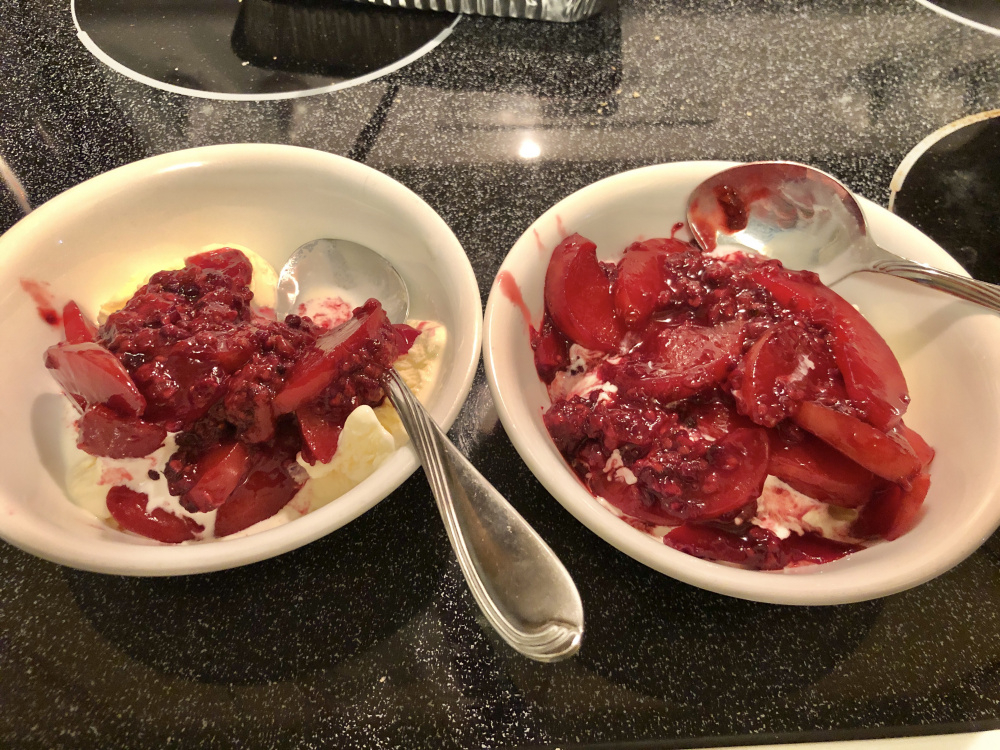 Took some blackberries and smashed them and sprinkled with sugar.EGGHEAD83 said:Please explain the fruit dish. It looks delicious. I’m guessing peaches and pomegranate.