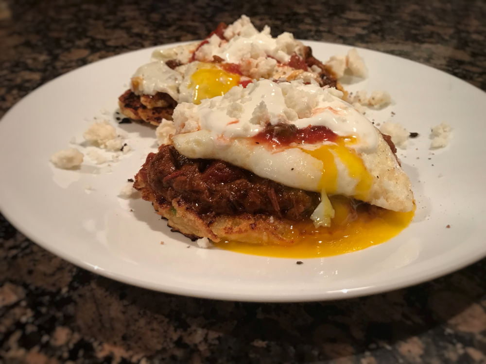 Using up the last of the chili between tonight and tomorrow. Tonight was Huevos Rancheros on hoe cakes. The hoes had green onions and mexican cheese in them.  Might just be my go-to base for huevos from now on. Good stuff.