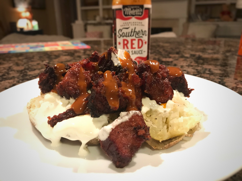 Then tonight, we had sour creamed and buttered baked potatoes with burnt ends from the point.