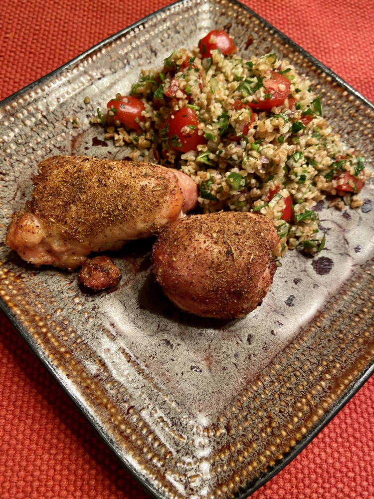No egg shot cuz it’s to dark. Tabouleh- fine diced parsley,mint,red onion, cucumber and cherry tomato halves, cumin and S&O with EVOO and lemon juice.