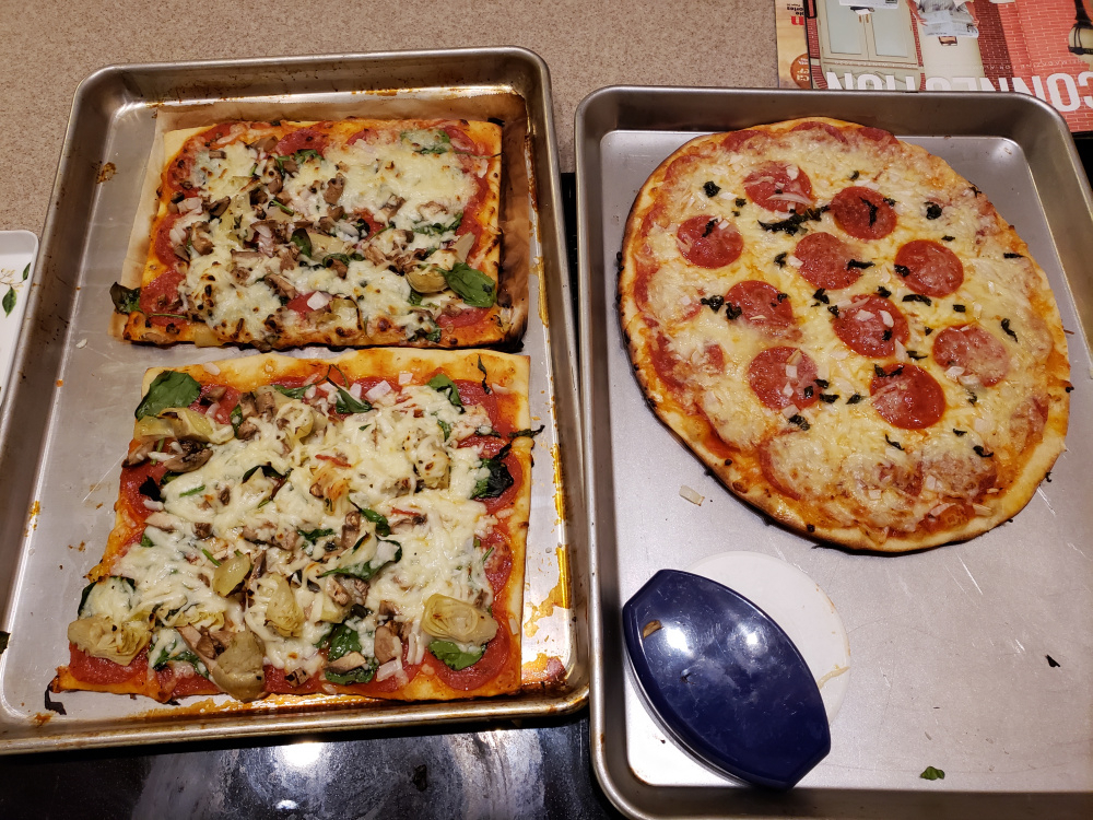 Just saw this thread--posted this elsewhere on this forum. Have a friend in town who loved our pizzas last time he was here. These didn't disappoint.