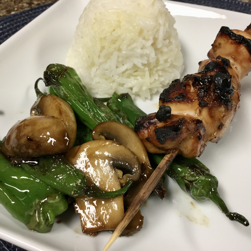 So we made chicken kebons, stir fried shishito peppers, and rice. Easy peasy. The shishitos were good.