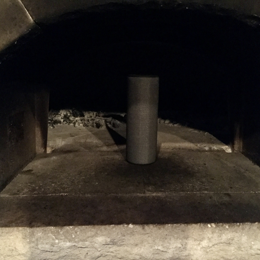 Oh, fun hack - put the bluetooth speaker in the mouth of the wood oven to enhance the base. It works...