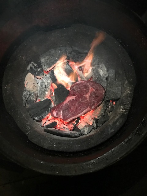 I have done caveman a few times and each time is meh on steaks. Works well with smaller pieces since you can avoid cool spots that leave the steak with a patchy appearance. I now have a small grid that I can set right in the coals to still allow for some air circulation for convection. I get a much better crust that way.