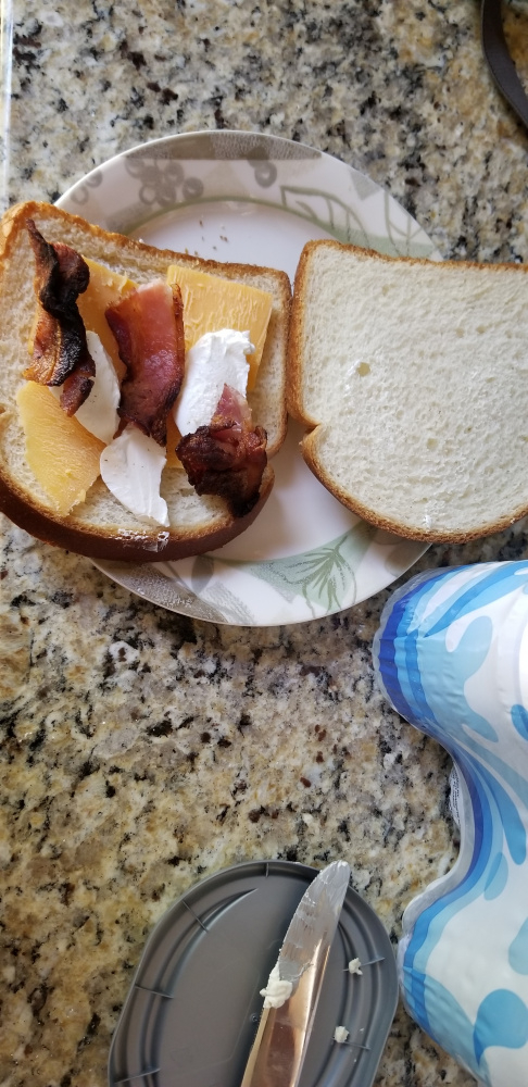 Continuing this morning with a bacon/cream cheese grilled cheese