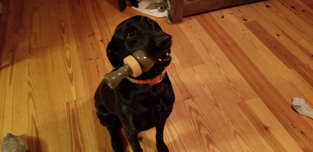 Ladyfriend came down last night , and brought duck dog a toy...I don't usually let him have them....but