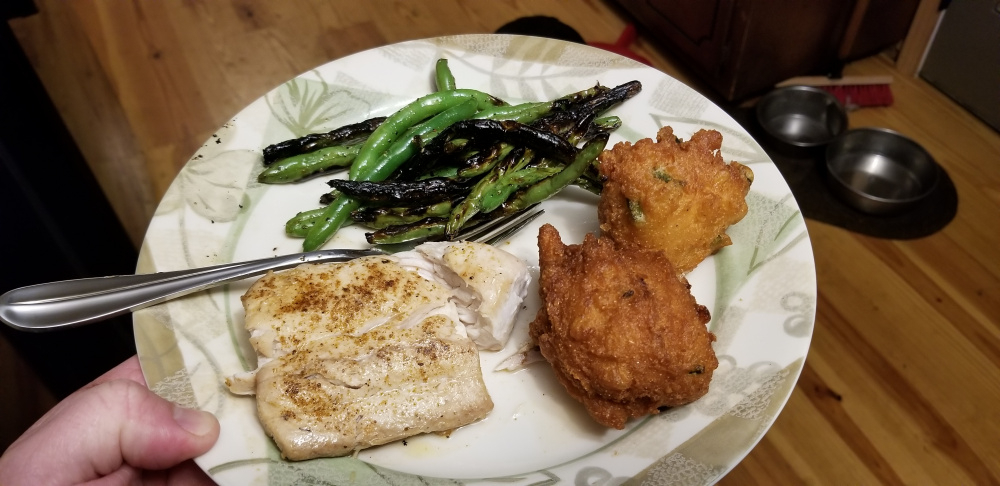 And the night was capped off with blackened mahi steaks and homemade hush puppies