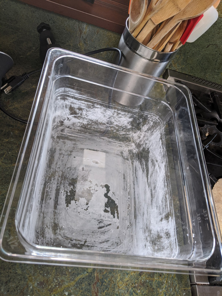 ROFL @GrateEggspectations. Very hard water here. Most of the time I'm operating at around 130F. That build up represents probably 6 or 8 months worth. Since calcium carbonate solubility is inversely proportional to temp one higher temp cook can create that much deposit.