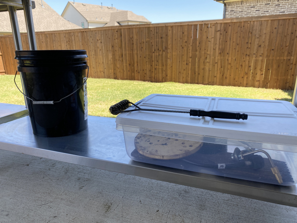 Much to my wife's aggravation I usually have it spread all over the porch table along with all my other cooking paraphernalia.