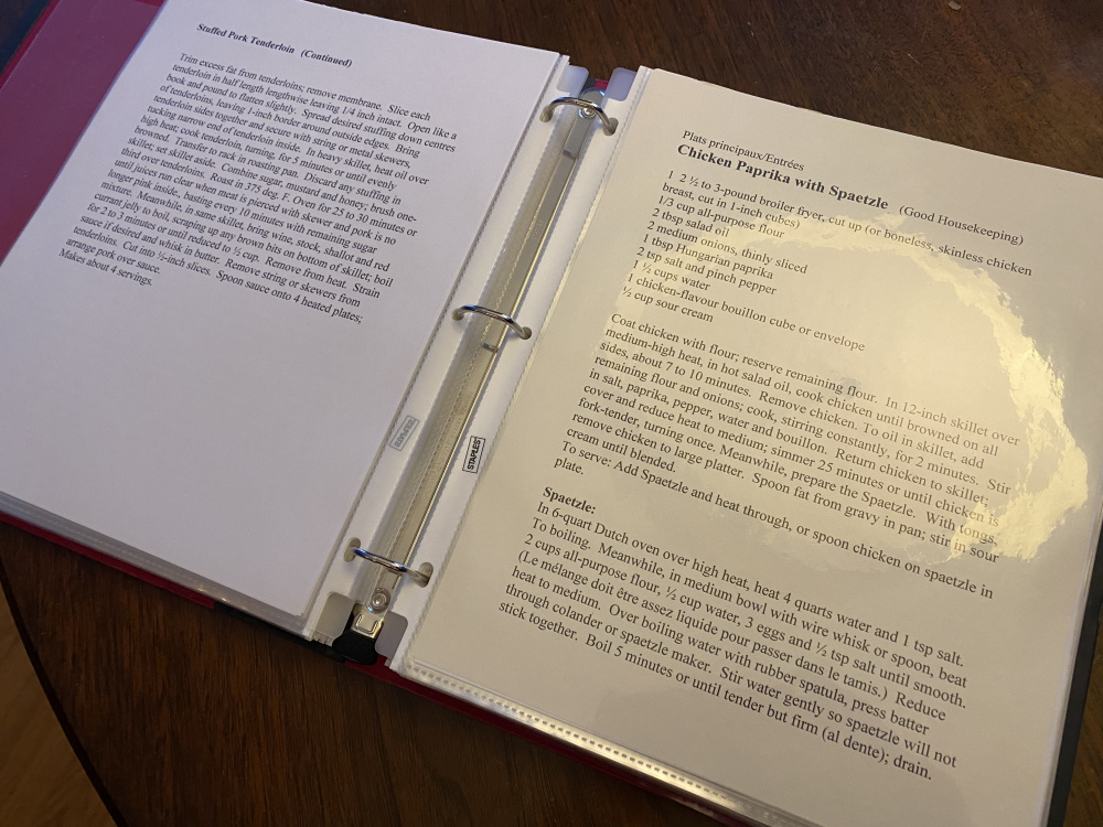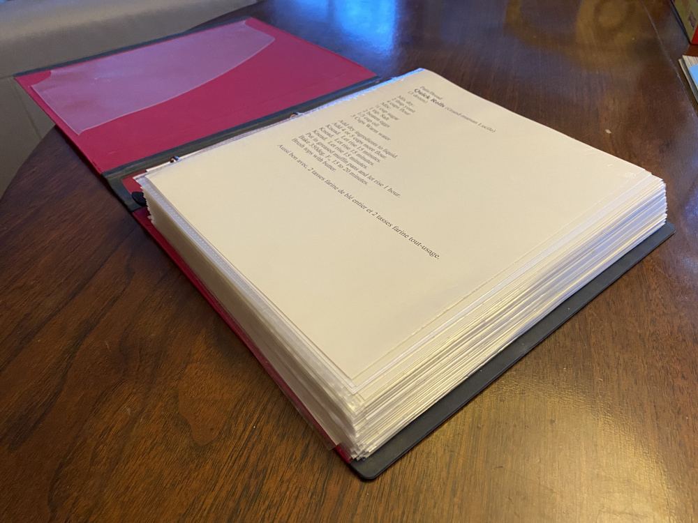 Years ago, for Christmas, my mother in law gave a pretty neat gift to all of her children. It was a collection of over 200 pages of recipes that were staples of their upbringing. Painstakingly curated, typed, printed and bound, the recipes were categorized by appetizers, mains, desserts and baked goods. I can’t imagine the amount of time she must have spent putting all of it together.