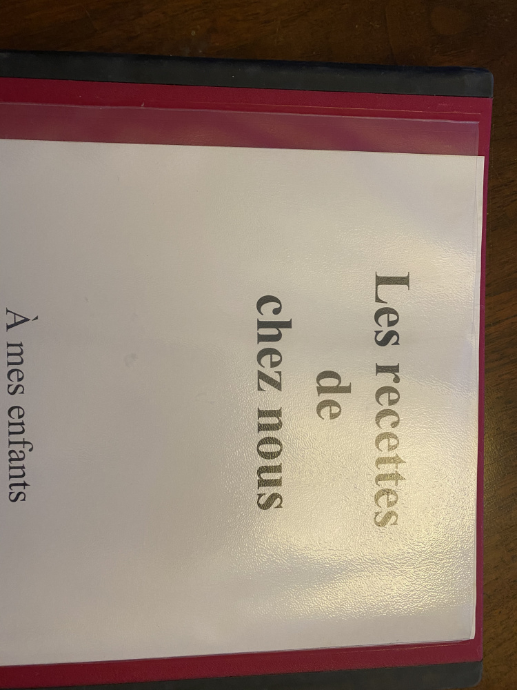 For those wondering, the title page loosely translates from French to “Recipes from our home. To my children.”