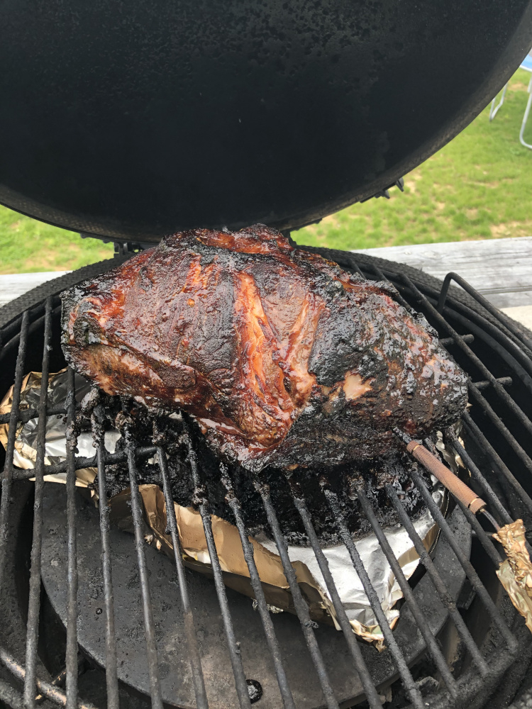 Thanks. It’s a 15 pounder even at turbo it will be on there awhile . Can I expect some blackened looking surface ?Foghorn said: that@YukonRon is the authority on this. If he's too busy and doesn't get back to you - I've done it a couple of times. Would not use a sugary rub. Put the preserves on just before you put the butt on the egg.XXL BGE, Karebecue, Klose BYC, Chargiller Akorn Kamado, Weber Smokey Mountain, Grand Turbo gasser, Weber Smoky Joe, and the wheelbarrow that my grandfather used to cook steaks from his cattle