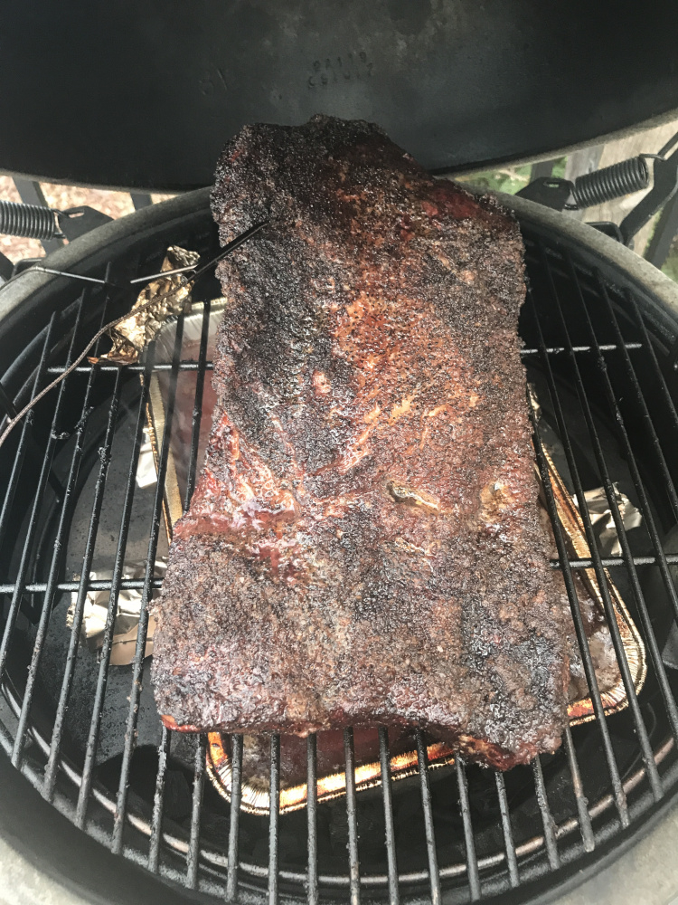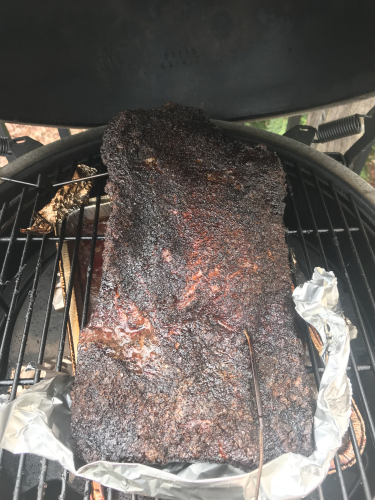 Taking a run at my first packer-sized brisket today. I've been reading the play-by-play instructions from some of the pros on here, and Mr. Foghorn was kind enough to send me his detailed instructions. Coming up on 4.5 hours in, I'm starting to hit some questionable territory.
