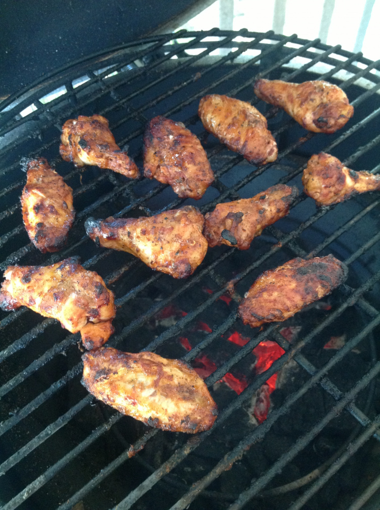 The results from tonight: Fire ended up being about 325-350 raised direct. Some were a little overdone at 50 minutes plus 5 on 2nd side.The upper level wings cooked only slightly slower than those on the bottom tier. The confusing thing to me was how the tops of the wings were what browned rather than the bottoms that were exposed to direct heat. -