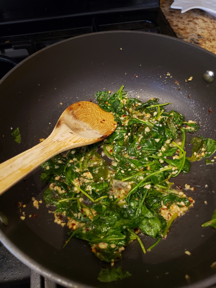 Made a "sauce" with some butter, spinach, garlic, red pepper flakes, yogurt, lemon zest, lemon juice, parmesan and S&P.