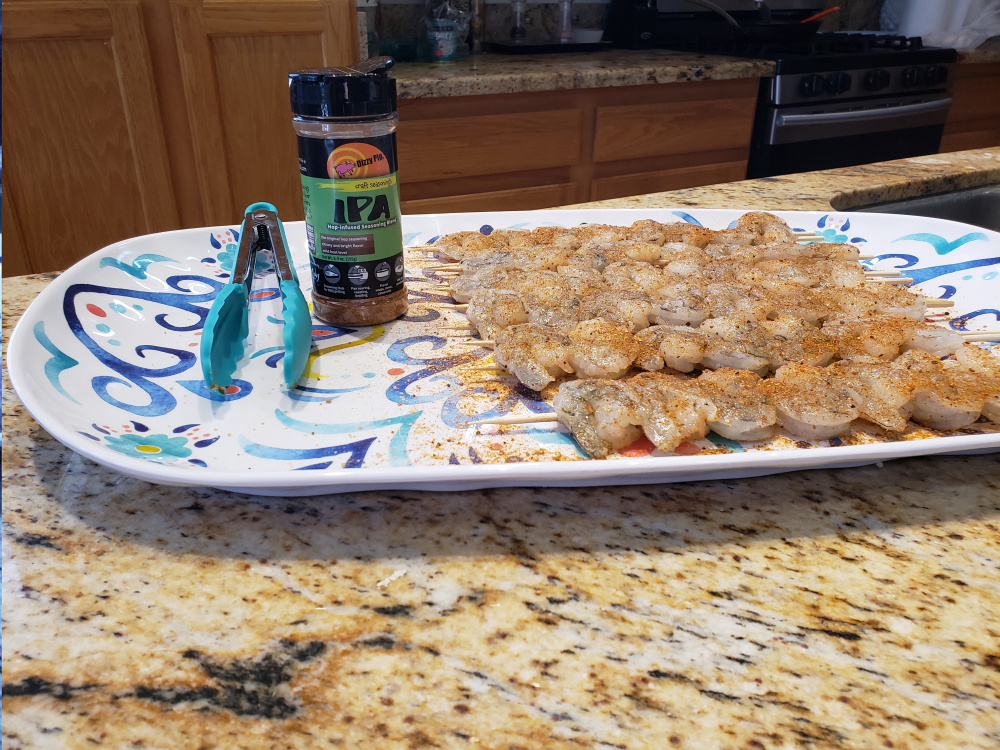 Started off the shrimp by dusting it with DP IPA and threw it on the grill.