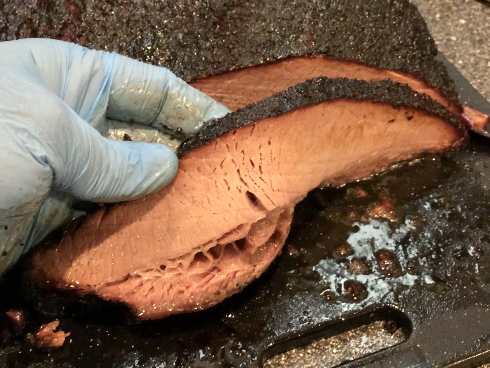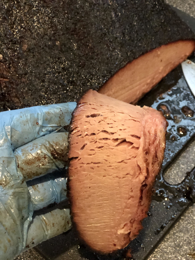 Seems like the fat on lower grade briskets don’t render away as easily as a better cut. Fat is also very bland tasting. Meat quality was still pretty good.Lighting was poor in my cut photos so it’s hard to see true colors.