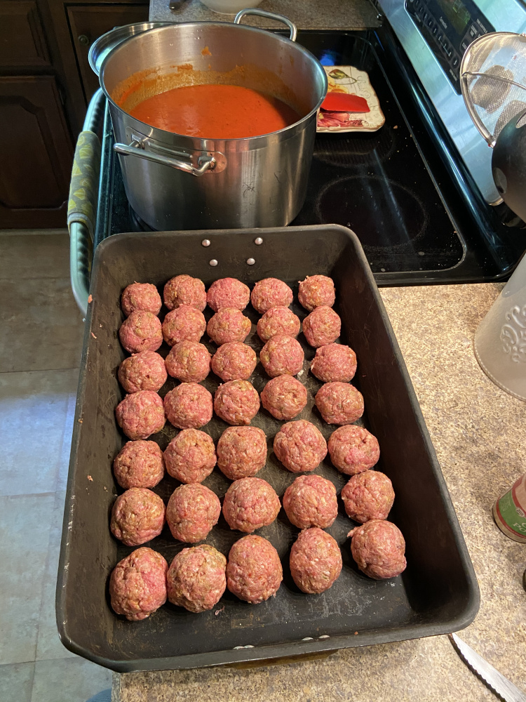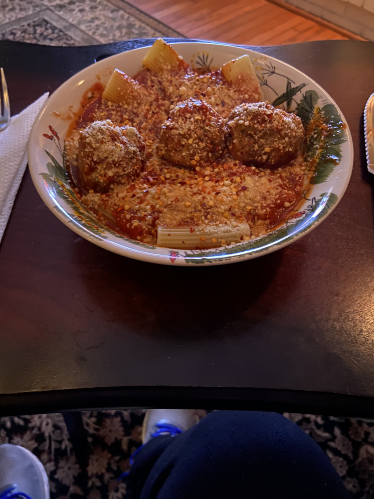 Setting modesty aside for a moment, people love my meatballs. When there's a luncheon at work I'm always asked to make meatballs. The sauce is mighty fine, too. De Cecco rigatoni, for the win!Maryland, 1 LBGE