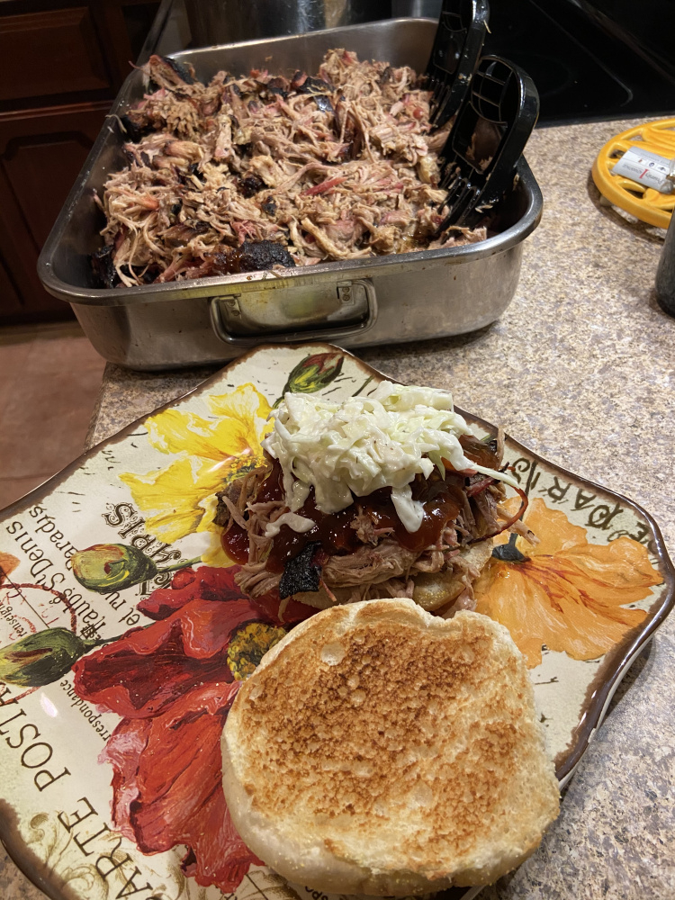 Looks like I have a lot of pork to eat (not a bad thing). These babies and a bucket of coleslaw were intended to be dinner for a charitable organization that in recent months only meets outdoors or via zoom. Severe weather (tornado warnings) has cancelled the outdoor meeting.