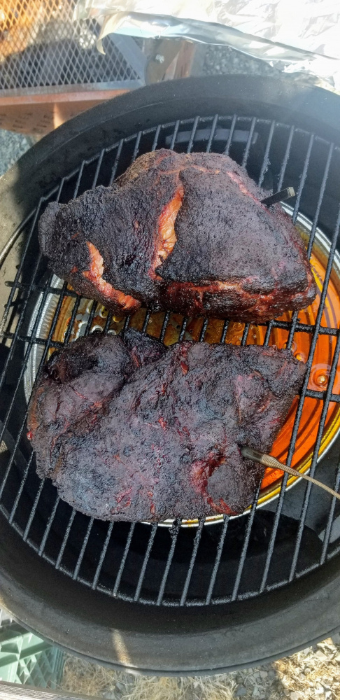 Starting at about 3 hours in, I spritzed every 30-40 minutes w 50/50 apple juice and apple cider vinegar. The last 2 hours I switched to 50%aj&acv and 50% Kahlua. As dark as they got, they're not burned - no bitter flavor at all. Temp was locked-in at about 275.lentsboy007 said:Anything special to get that rather incredible bark?
