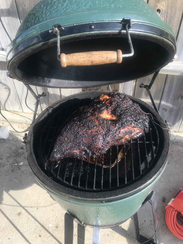 Flameboss 500 can’t grab the WiFi here. Weak signal. So it was in direct mode. Butt cooked quickly at 225° with just Rockwood lump and Rockwood hickory chunks.