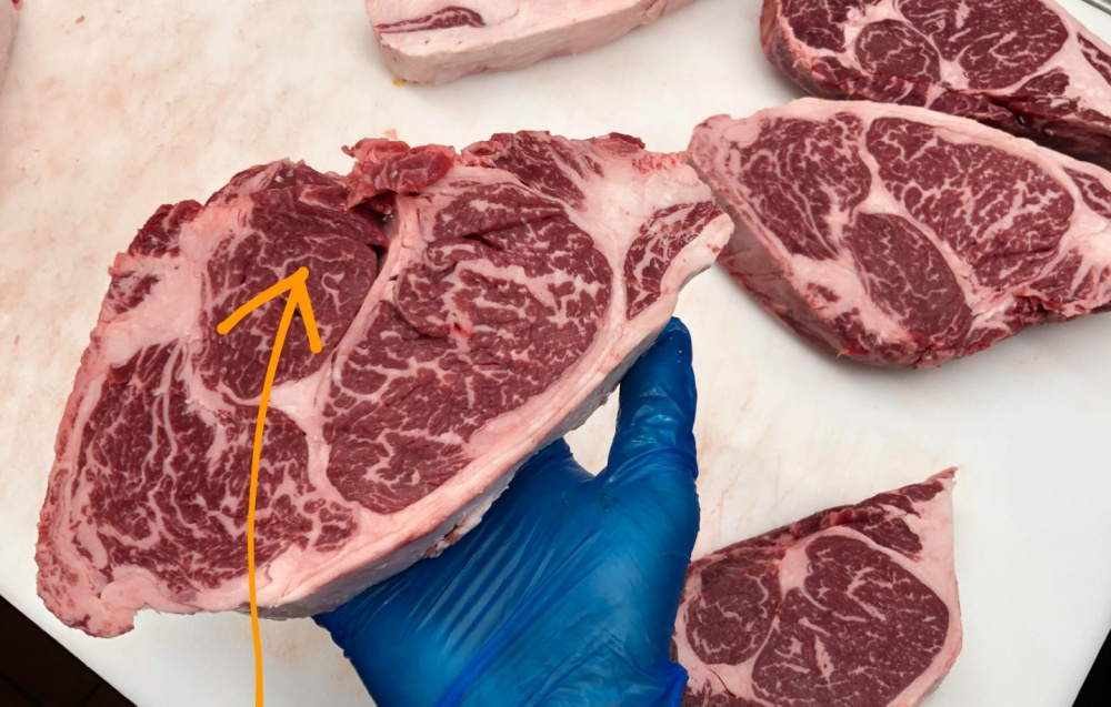 Last week we were at our Costco and they had some A5 Wagyu Ribeyes out @ $99.99/LB. I asked my wife, who would be crazy enough to buy those? Well today is our 51st Anniversary and we were there again. She said, "why don't you get a package as my present to you", she knew they are on my bucket list. I looked at and touched all 22 packages they had and grabbed this one. Although the marbling was similar on most of them, check the spinalis out on these babies. My wife's a keeper for sure.