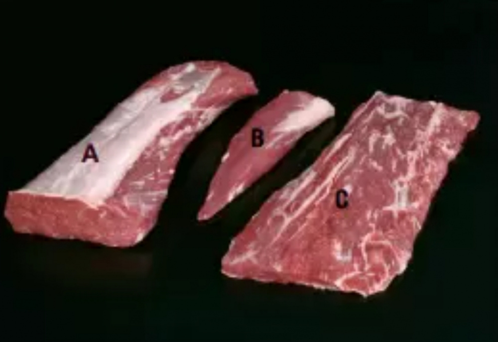 I think the complexus is overlooked. It's only in roughly half the ribeyes so I always wait till my butcher has the ones out that have a big piece of it. Muscle B below...