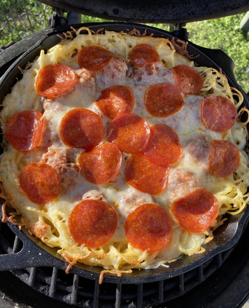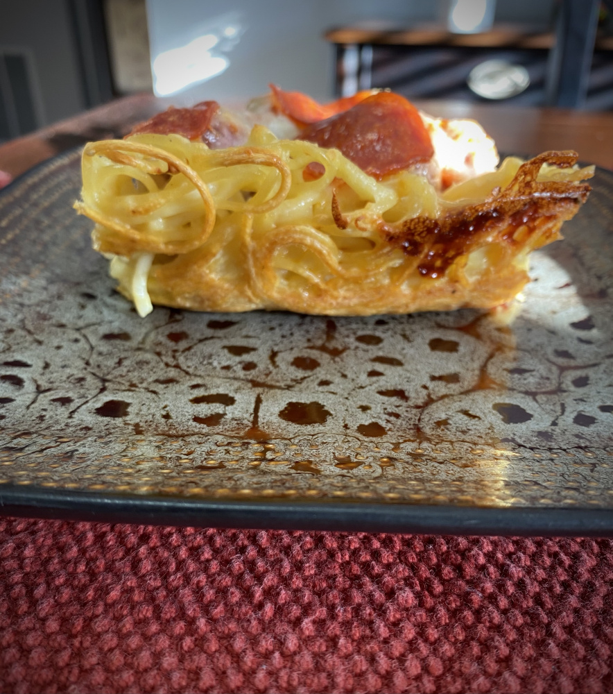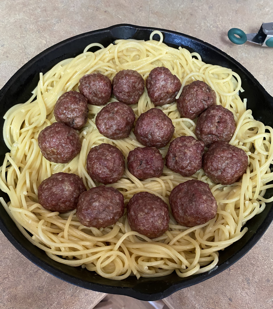 Crunchy, toasted pasta “socarrat” on the bottom. Smoked meatballs from the egg. Cheese and salami? Dagnabbit man! That sounds delicious. I can imagine the range of textures. 10/10 my friend.