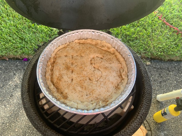 Poolman Pat had cooked a turkey & Kathy used some of it to make a turkey pot pie...with the vent holes showing "T S" for Tuckaway Shores...