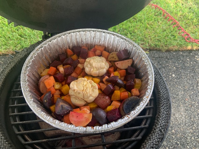 For a pre-dinner item we did roasted root veggies (carrots, parsnips, fingerling potatoes, sweet potatoes, red & golden beets plus garlic)...nice change from all the meat...