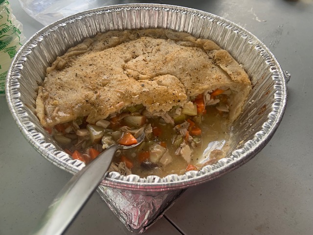 and the pot pie being served...