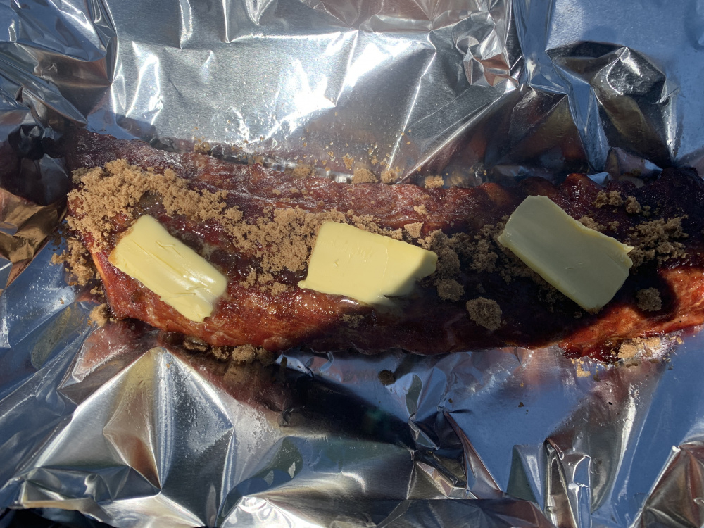3hrs into cook. Wrapped with brown sugar and Kerry Gold butter.