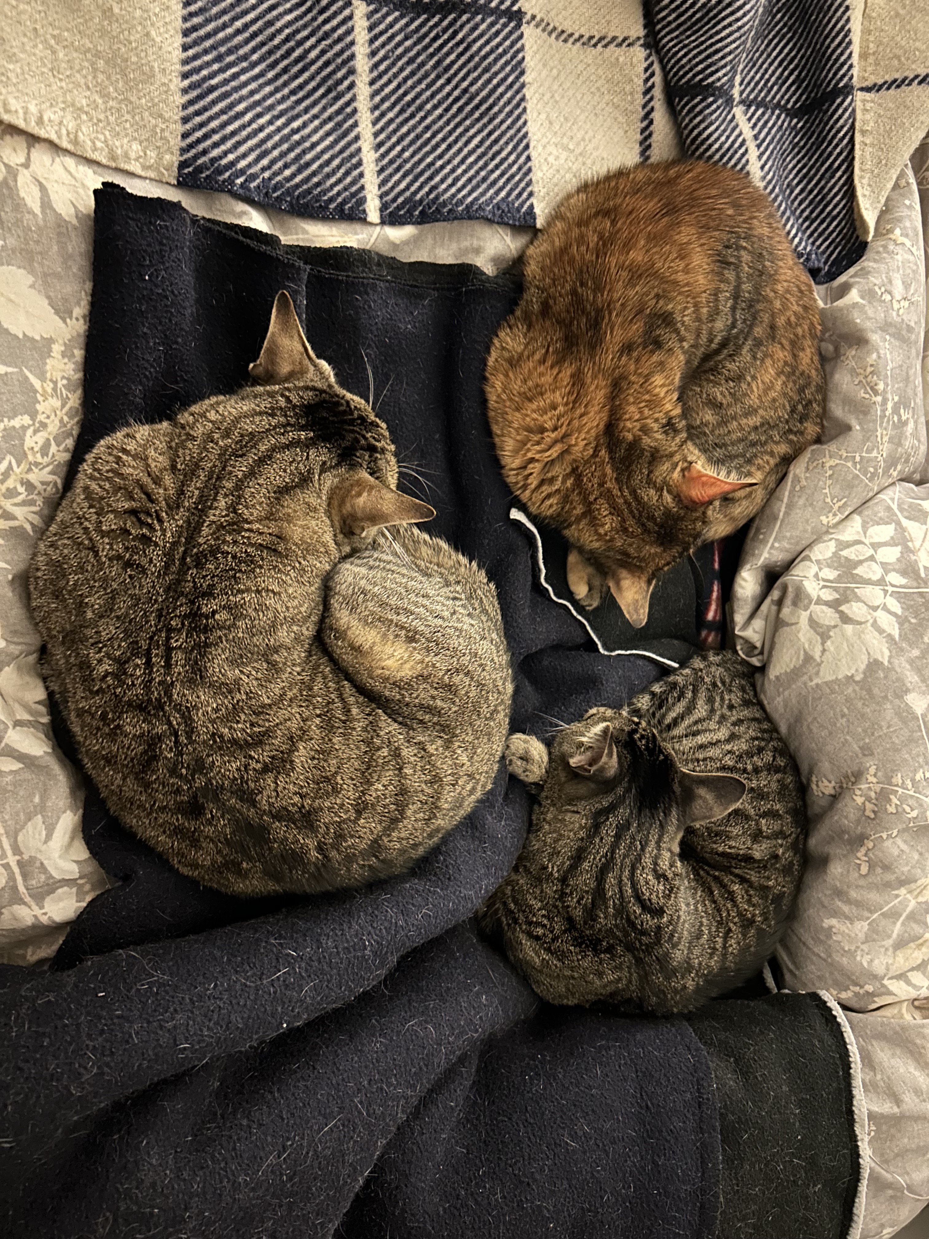 No picture but I have a Doodle in my lap and a whining Boxer at my feet. They don’t like the boom booms outside.