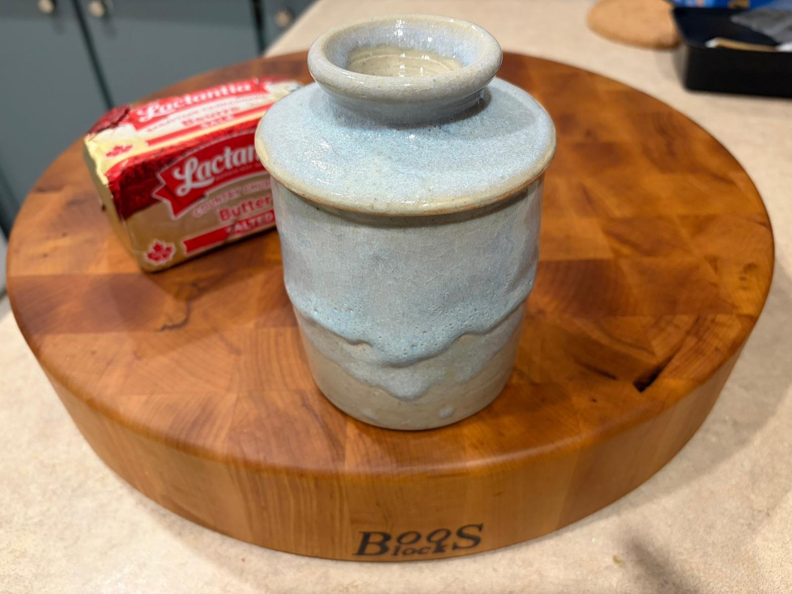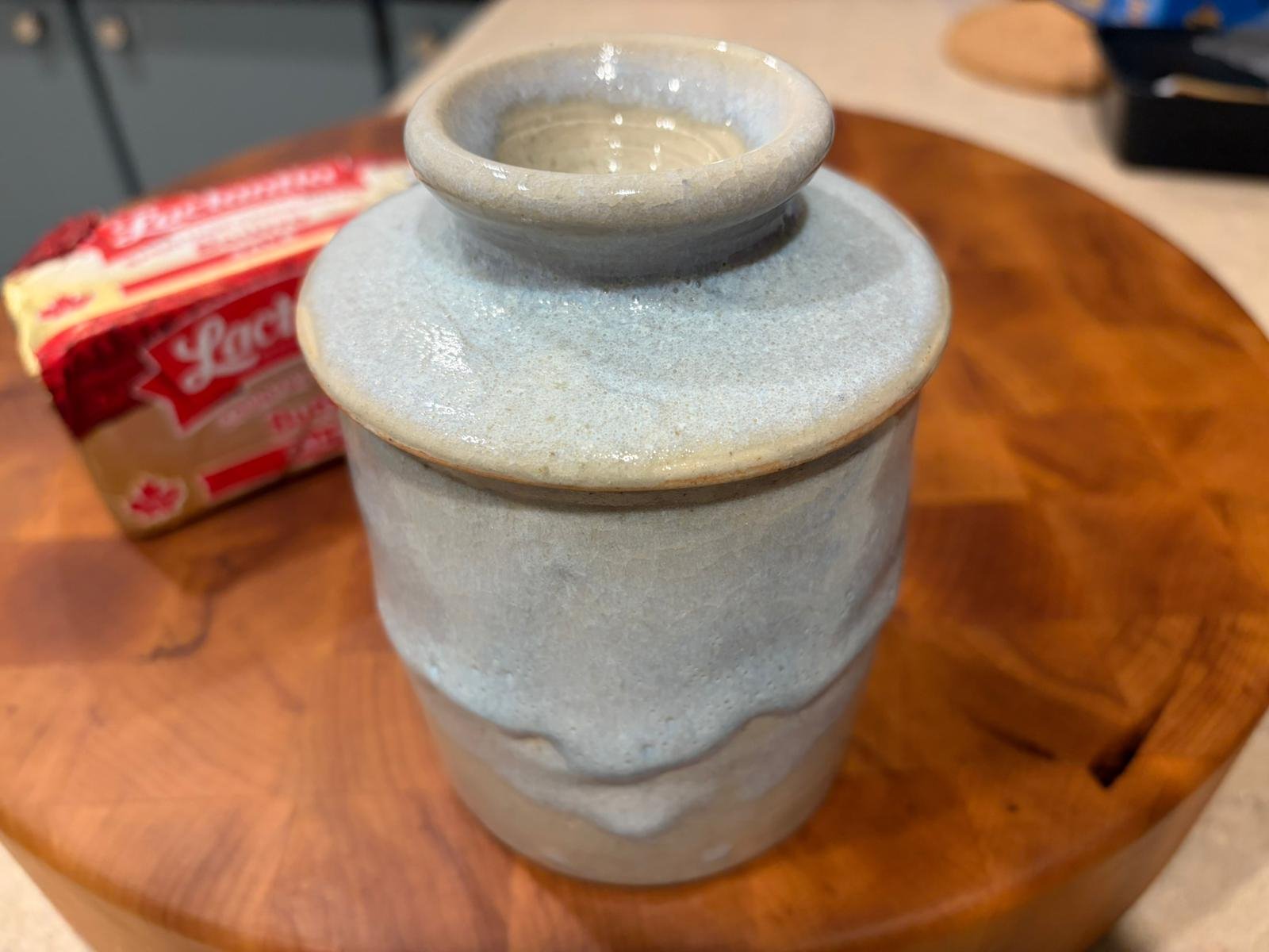 Hate to be the guy smiling at the funeral, but I thought we needed another good news story in the midst of a little bit of carnage.Was able to dodge the five-letter shipping fiasco due to white glove delivery courtesy of @CTMike and a few elves from his workshop. Thank you again, Mike, and thanks to your kin for the assist!Great drip glaze that matches the colours in our old 1950s kitchen - purely coincidental, as I couldn’t really tell from the initial photos. Salted butter coming to room temp as we speak. @caliking - Do you drink the vodka before or after you’ve set up the keeper?I’d post some pictures, but Vanilla strikes again. Maybe I can press @Canugghead into service. 😊