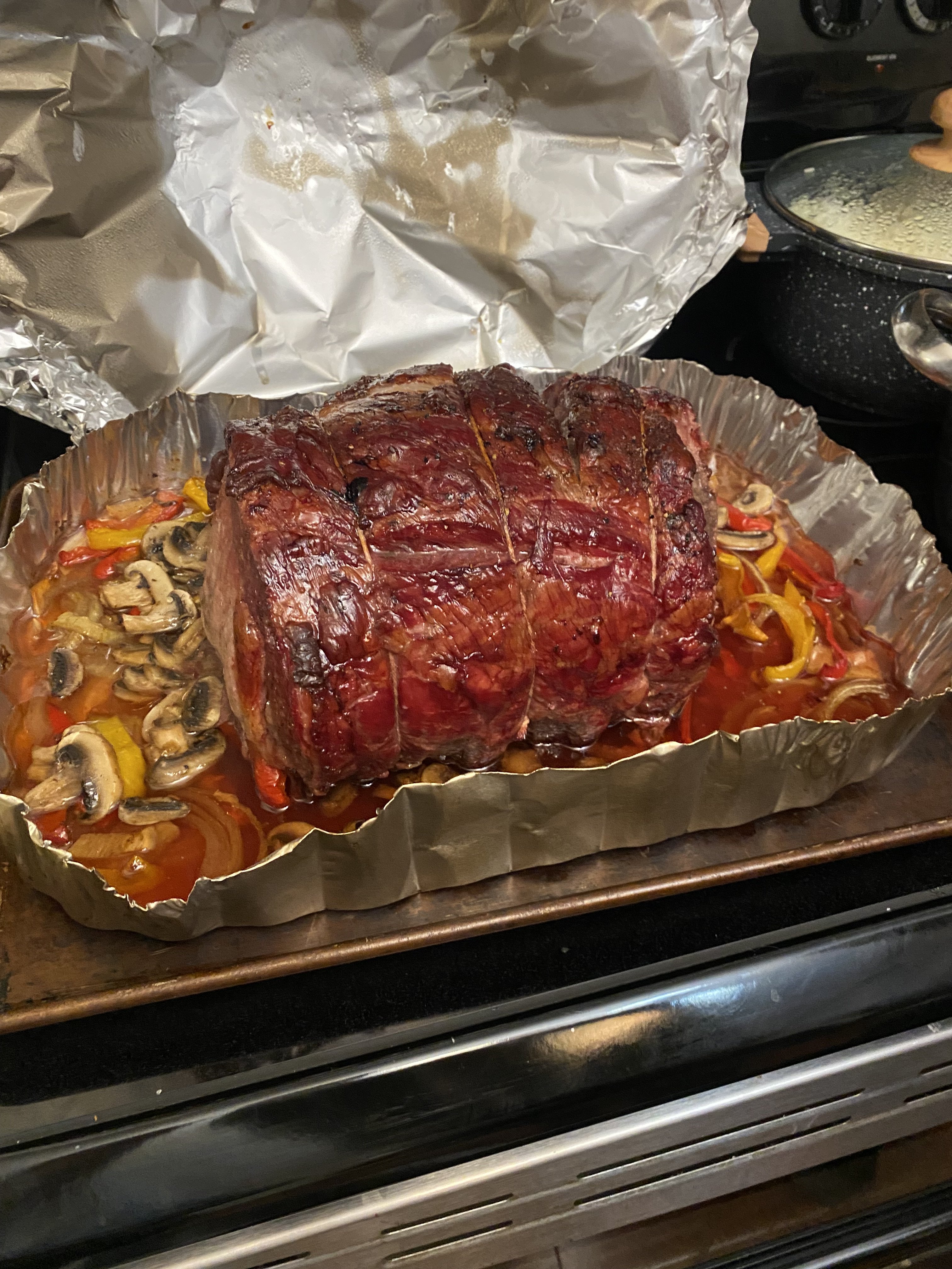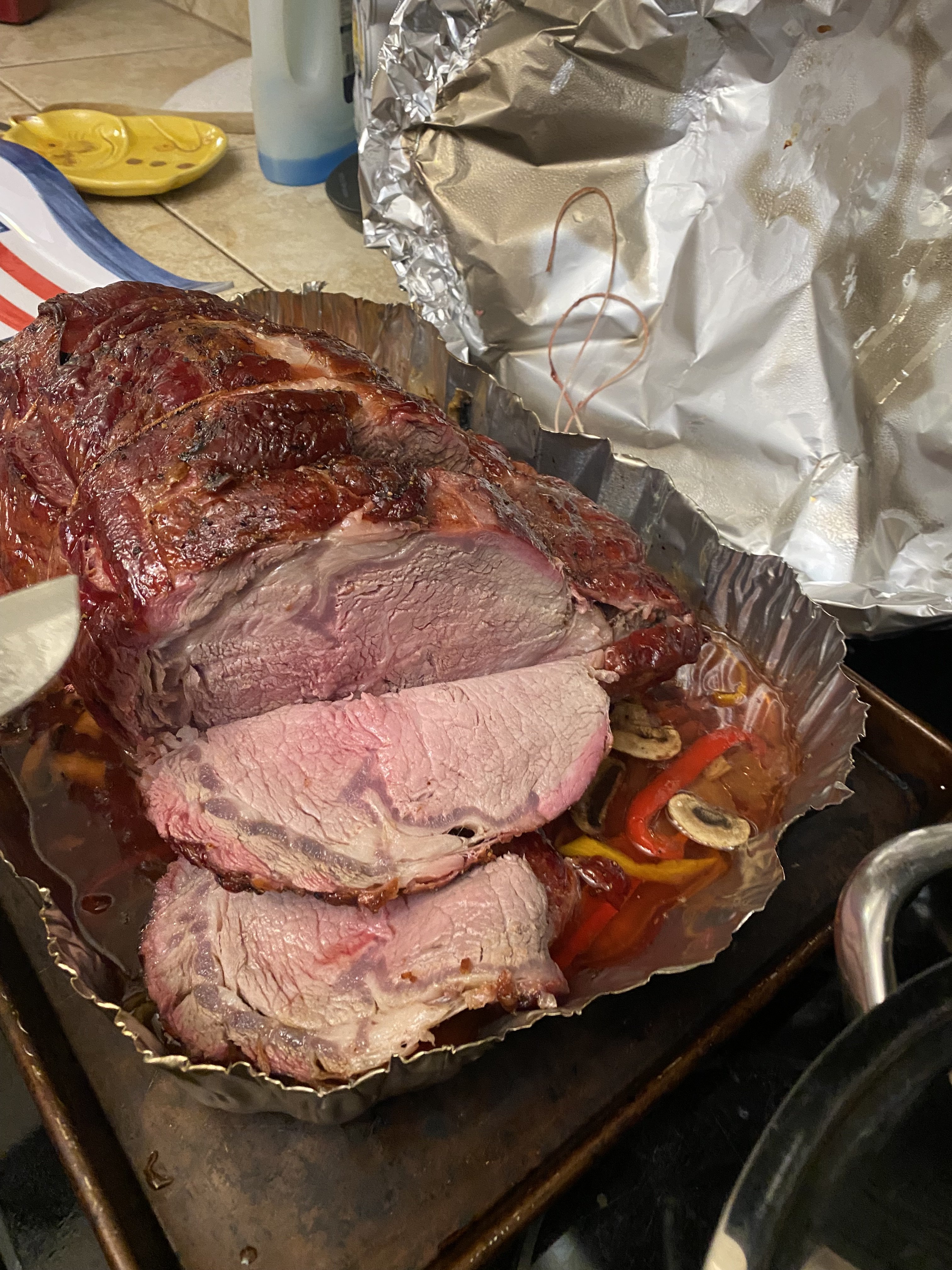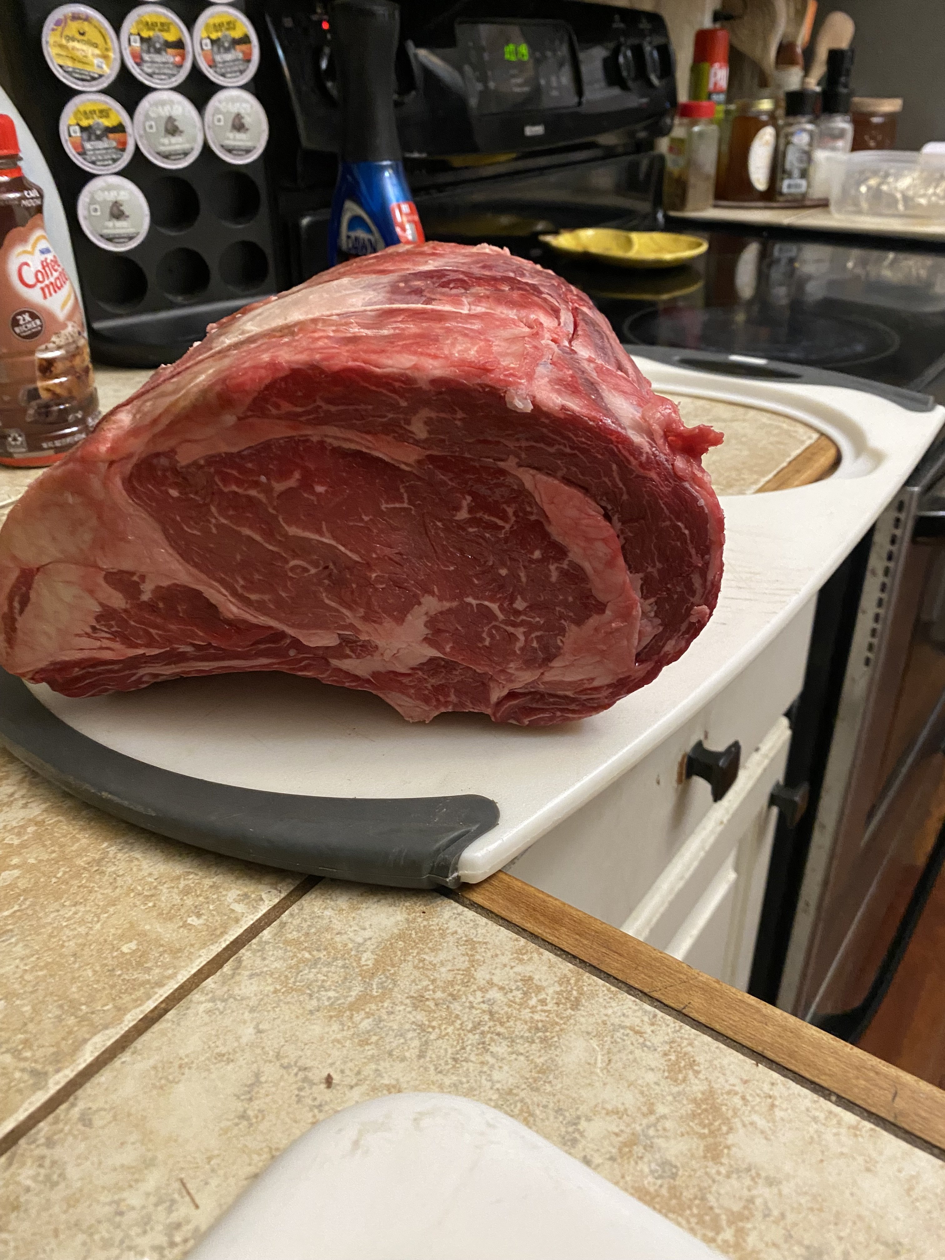 That is a great hunk of protein to cook. If you want to get selfish, remove the bones before the cook, tie the roast as round as you can and save the rib bones for a separate beef back rib banquet.