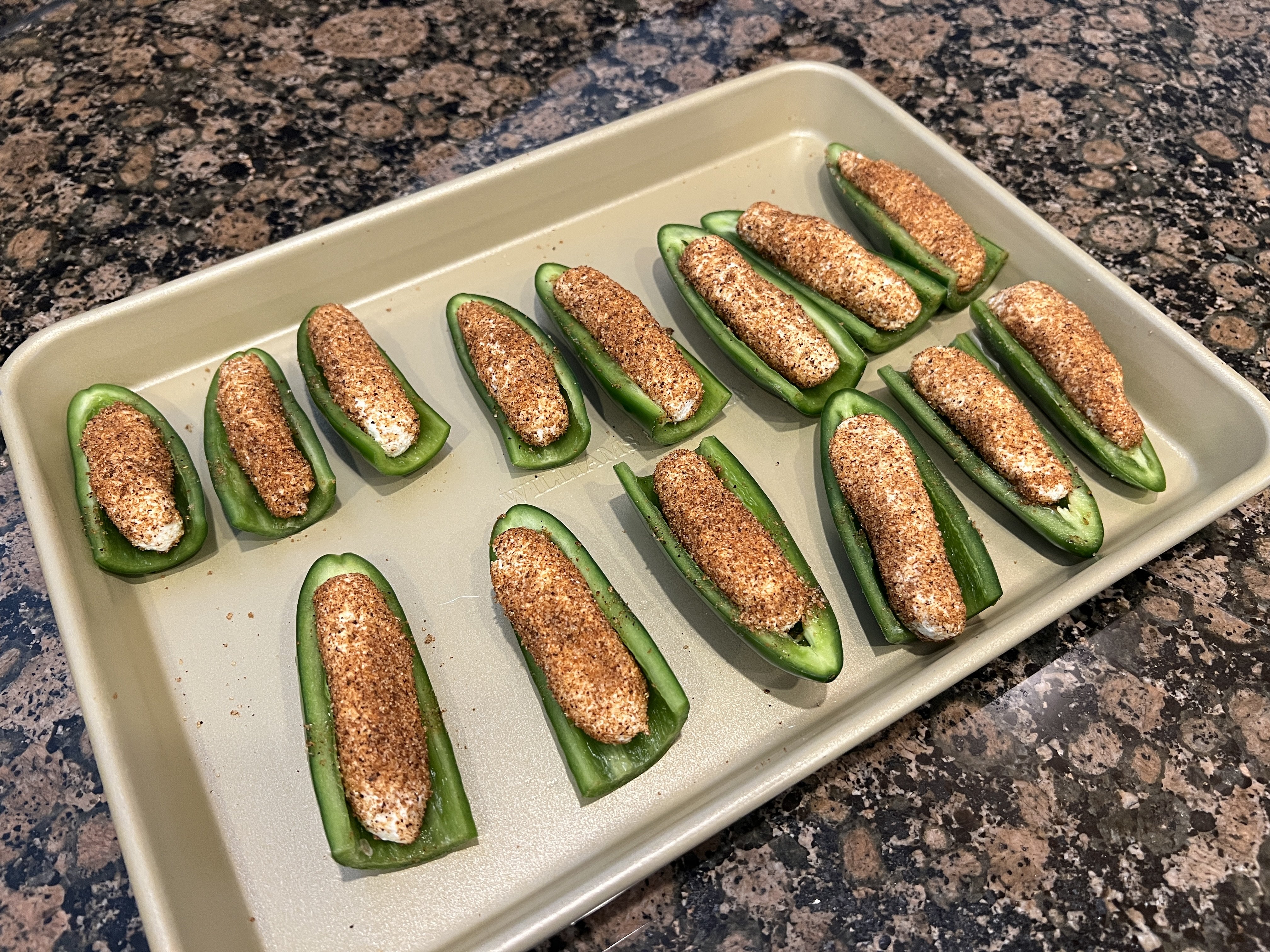 Modified Texas Twinkies:  (substituted chorizo and pepperoni for brisket-so definitely not Texas!!) But it's a rare sighting to find good sized jalas in fly over country.  I'll restock the sacrificial brisket early next year.