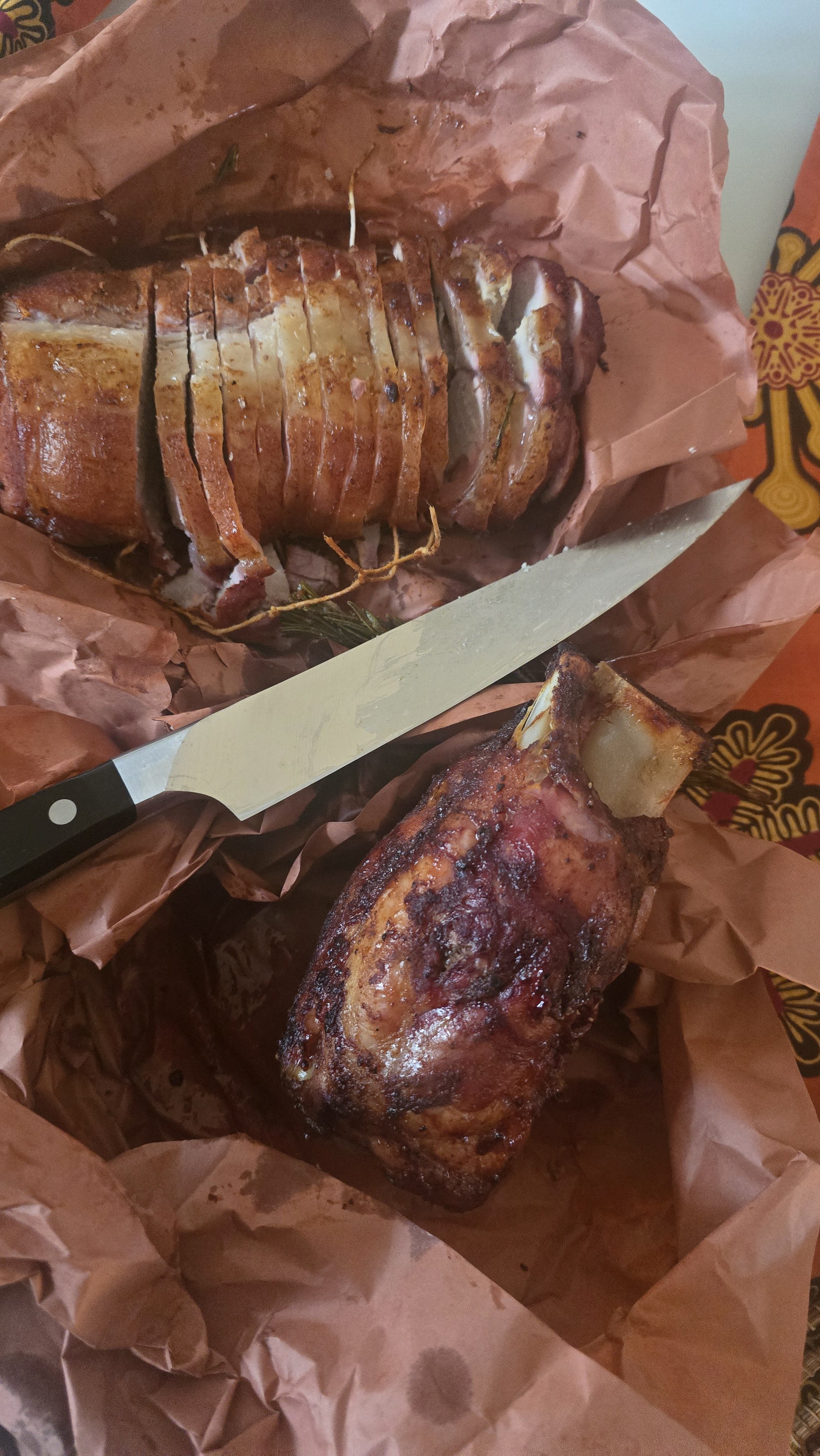 A plain, simple cook with what I had on hand: a pork shank, a veal roast and some turkey.