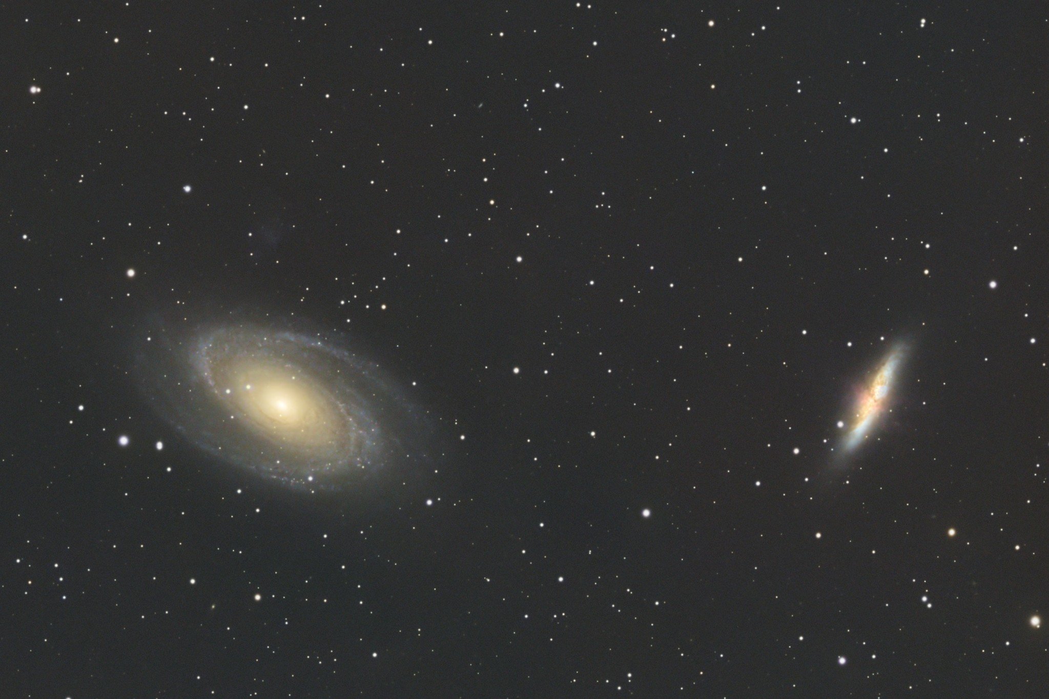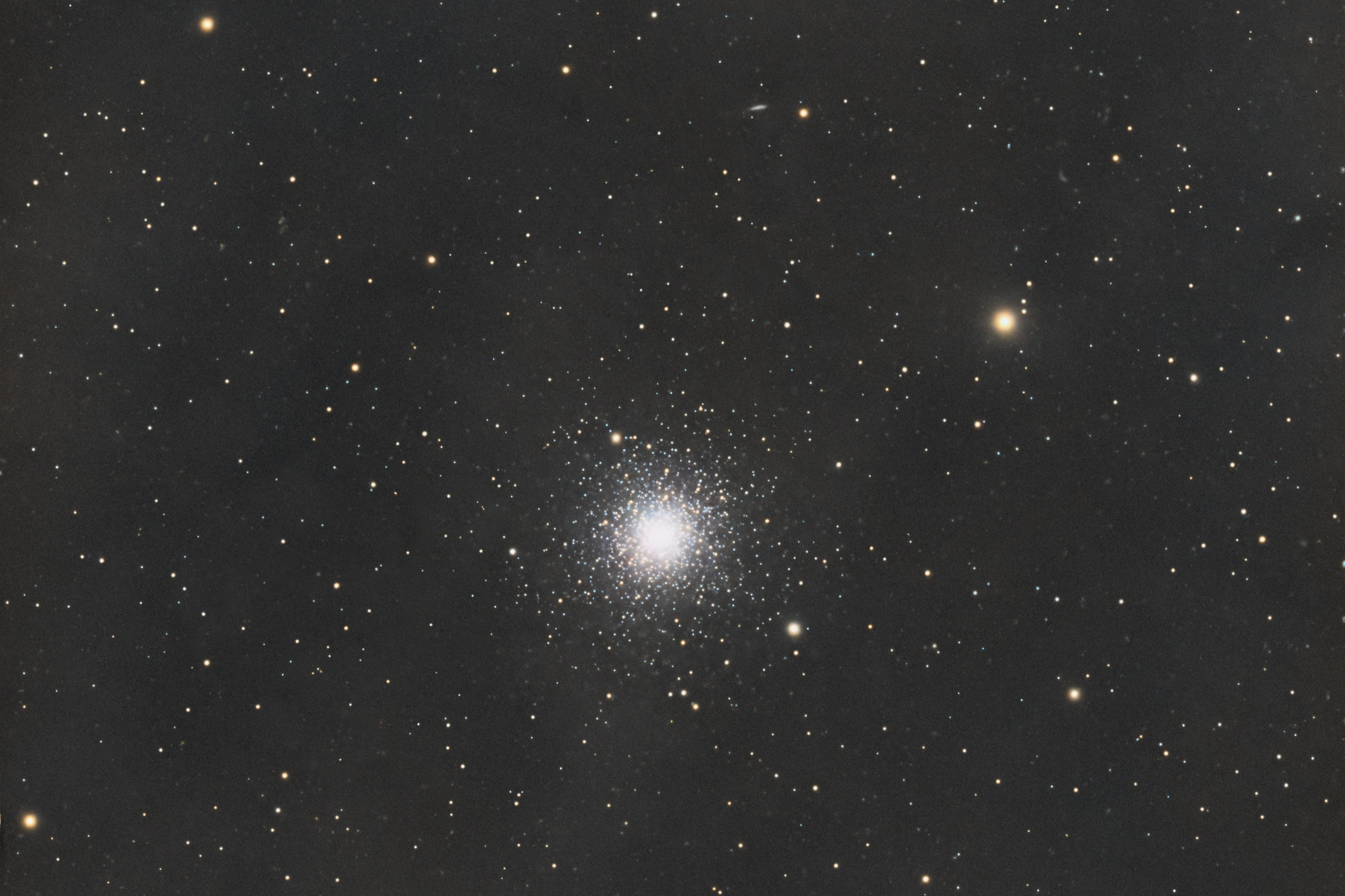 The scope is a small 70 mm Petzval refractor by Askar. It has a decent focal length of 420 mm and fairly good optics. It’s fitted with a smaller 30 mm guide scope and a ZWO EAF electronic focused.