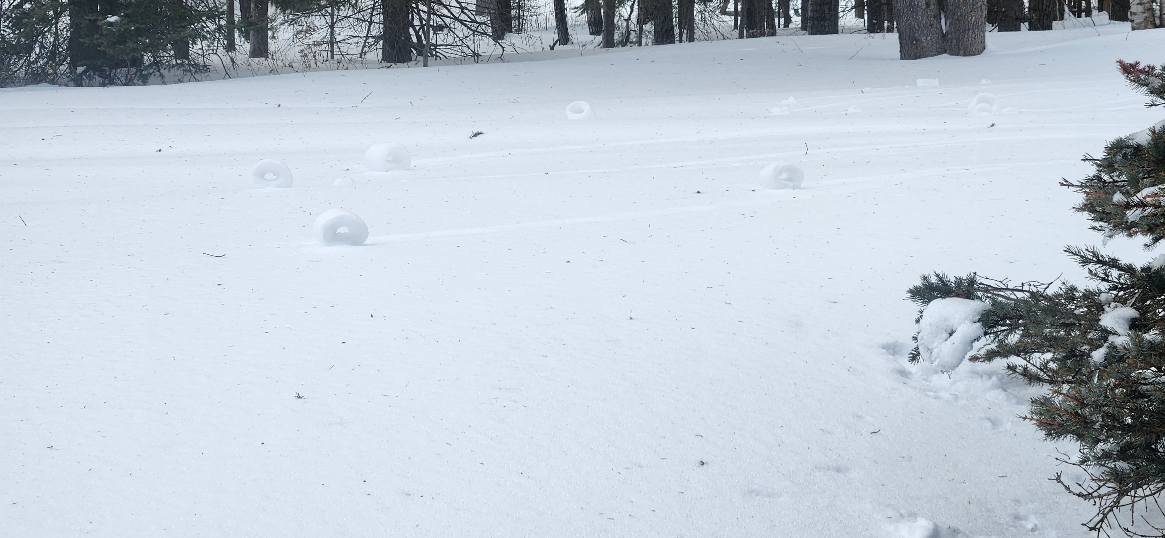 Wind picked up heavy today and started rolling the snow into cylinders everywhere. First time I've seen this.