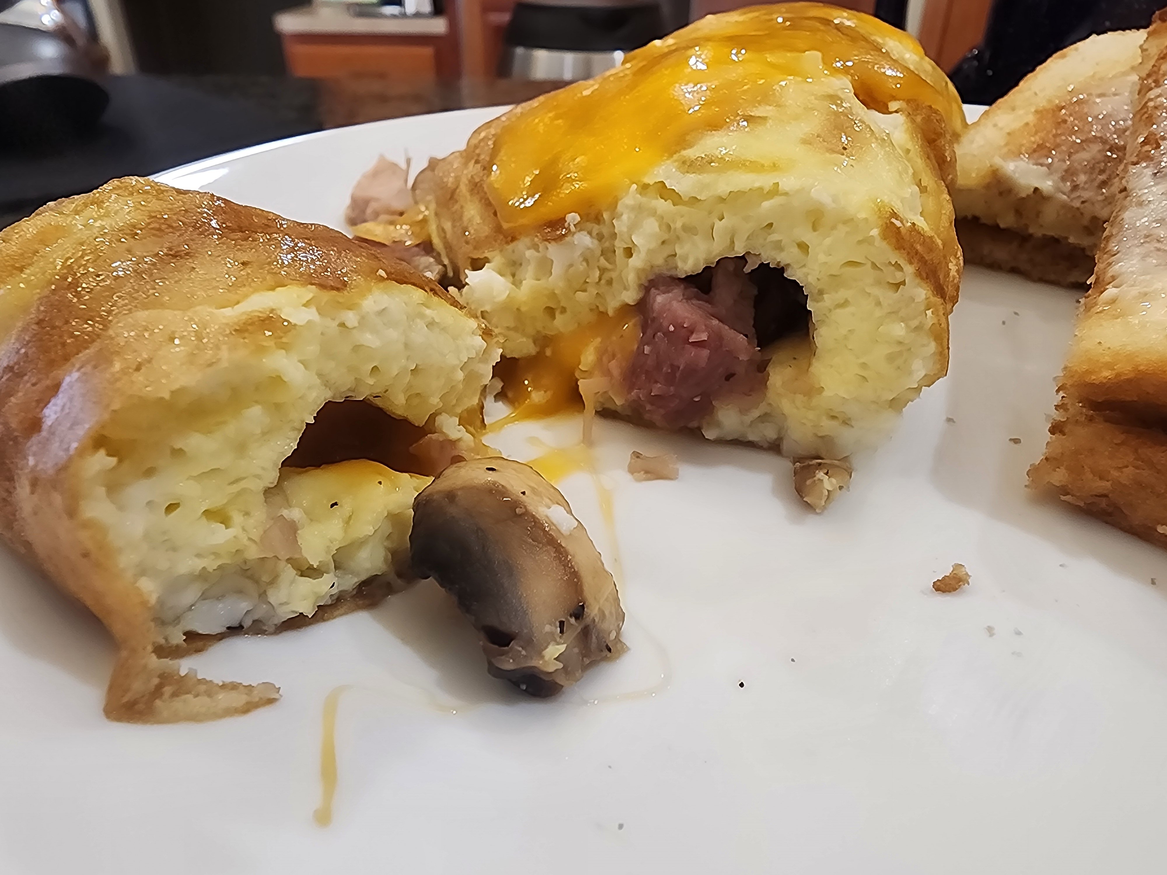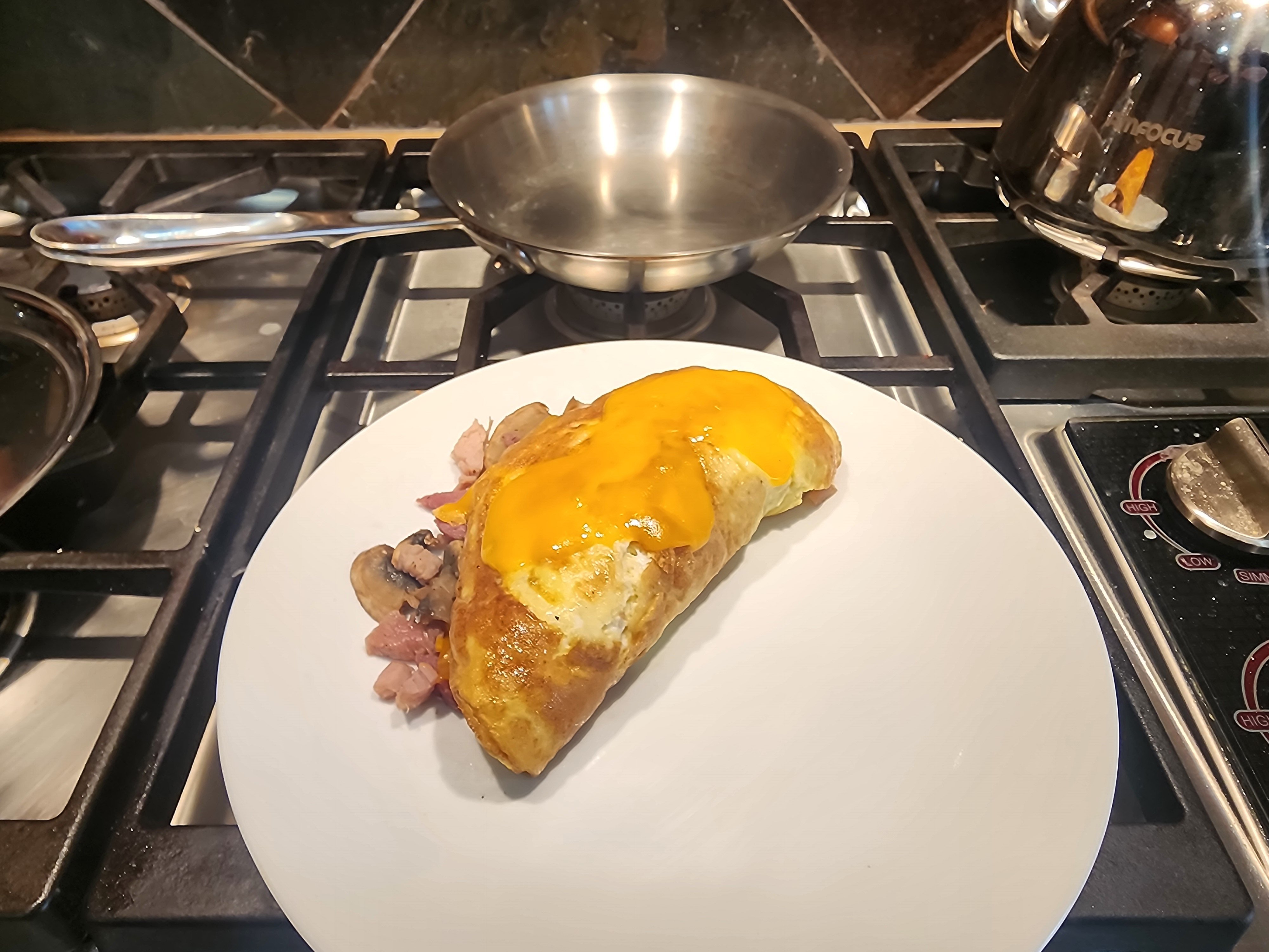 I love making breakfast on the weekends and this 3-egg ham/ mushroom omelet did the trick